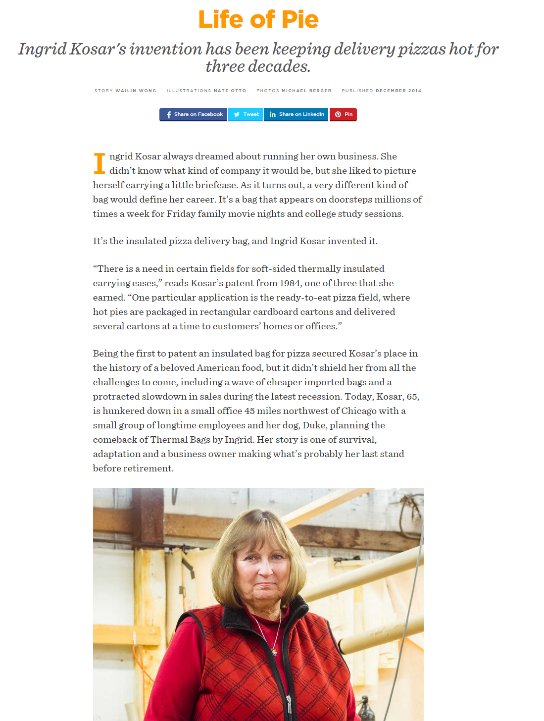 Do you like your delivered pizzas hot? If you do, thank Ingrid Kosar. Ingrid Kosar invented the pizza delivery bag that keeps pizzas hot until the pizza delivery man gets it to your door.