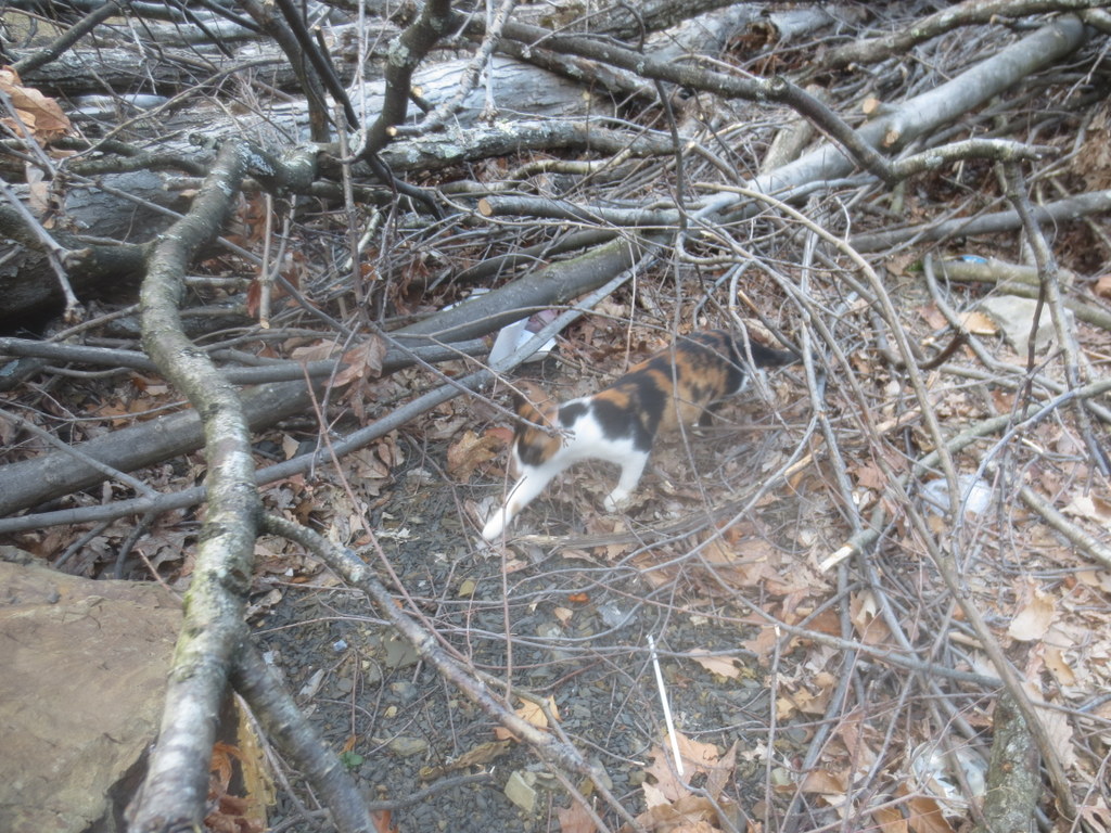 This is Patches exploring our brush pile.